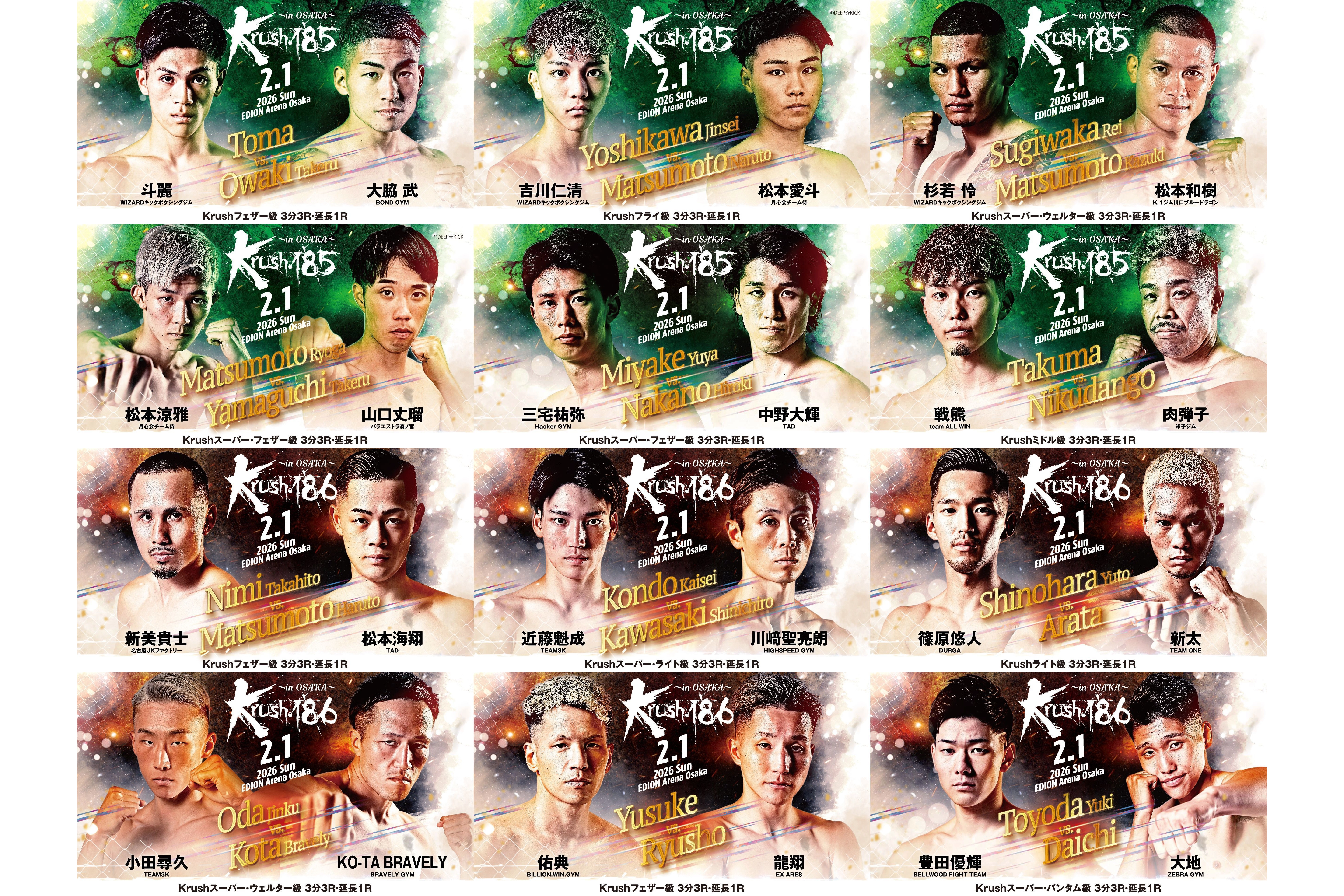 「Krush.185/186 ~in OSAKA~」2月1日(日)大阪府立体育会館・第2競技場(エディオンアリーナ大阪)大会のカードが決定しましたのでお知らせします。