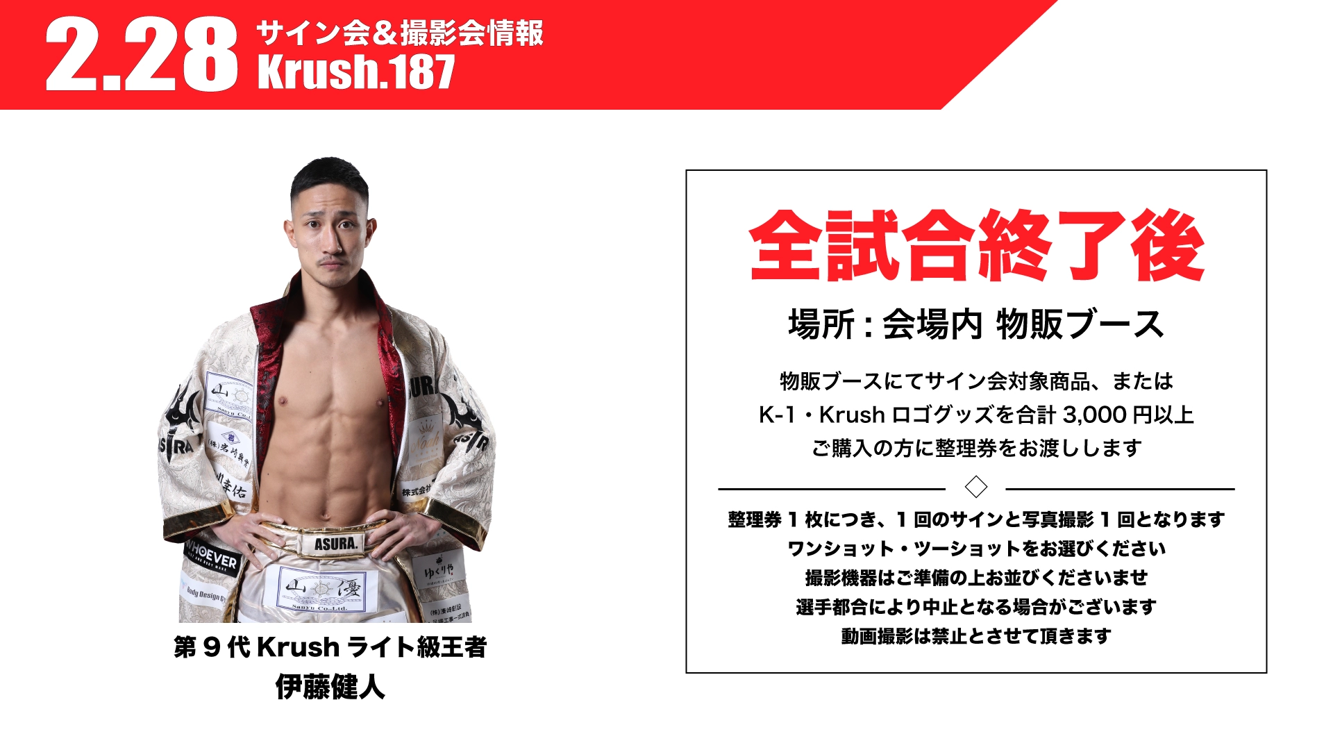 「Krush.187」2.28(土) 後楽園 伊藤健人選手サイン会&撮影会開催が決定!