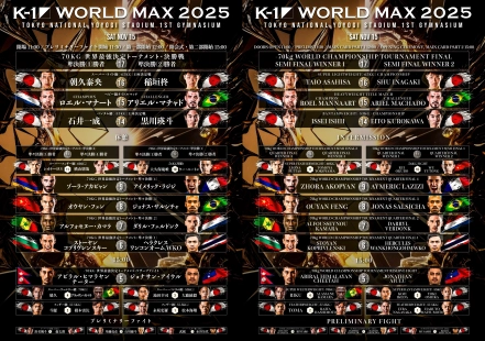 「K-1 WORLD MAX 2025」11.15(土)代々木 全試合順が決定! 今大会の火付け役は「永坂吏羅 vs 松本海翔」! メインの最終試合は「-70kgトーナメント・決勝戦」