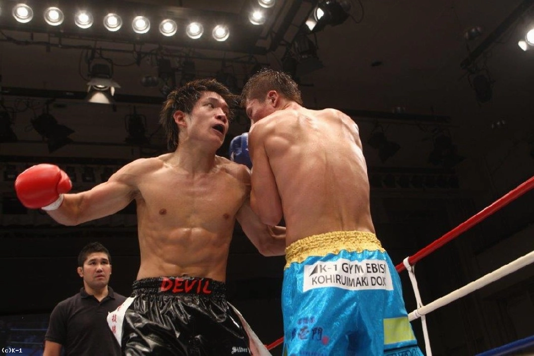 3R、K-Jeeは再び勢いを発して秋元に迫る。しかし秋元はこれの勢いに飲まれることなくプッシングでK-Jeeを押していき、左右フックのヒットを狙う。だが秋元は右ローを効かされスタミナも苦しいか、ホールディングが多くなり、K-Jeeの右ローを受け足が泳ぎ出す。しかしK-Jeeが右ローを多用してくるとしっかり左足を上げてカットする。だがここで秋元はホールディングでレフェリーから警告を受ける。右ロー続行のK-Jeeに秋元はバックブロー。上手く距離を潰してK-Jeeに右ローを出させず試合を終える。