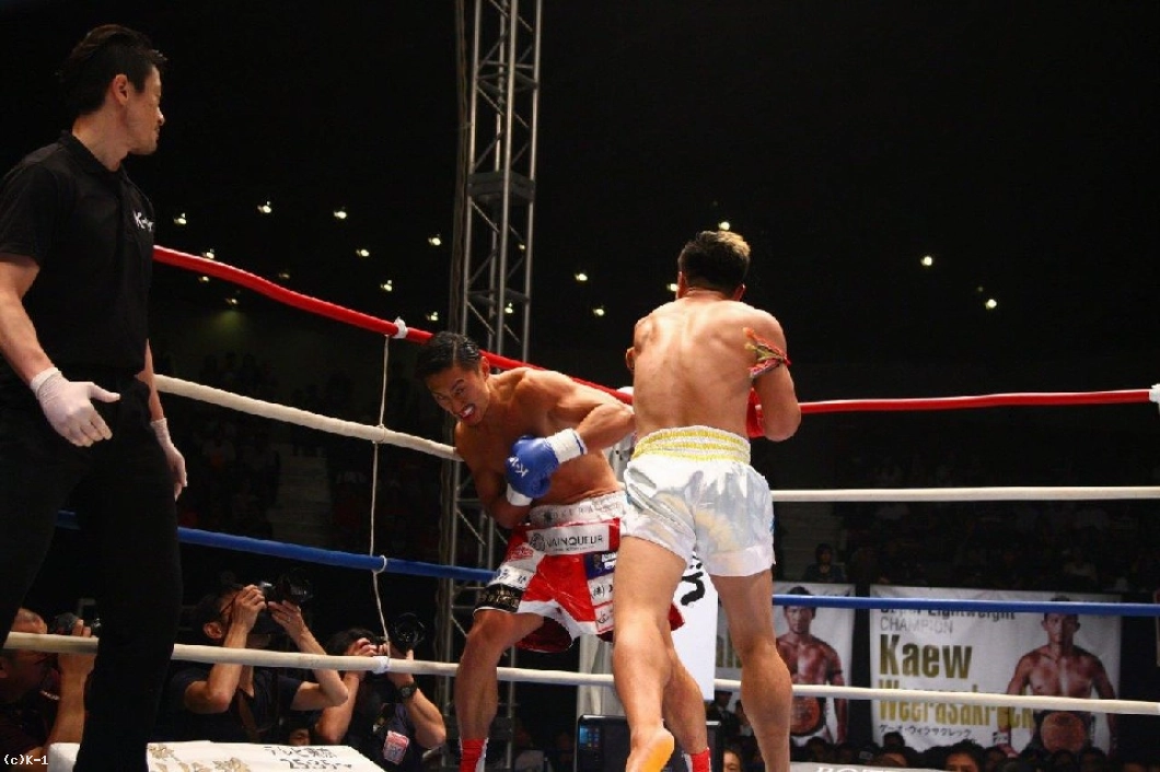 2R、ゴンナパーは山崎のお株を奪うような跳び前蹴りを打ち込み、山崎は左回りするが、ゴンナパーはしっかりガードして攻撃を当てさせずローと強打で迫る。そして左ローを打ち込むと山崎は足が流れる。ゴンナパーはハイキック、左ストレート、右フックと猛攻を掛けるが、続いて首相撲でとらえてしまいレフェリーから注意を受ける。