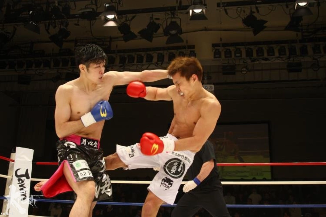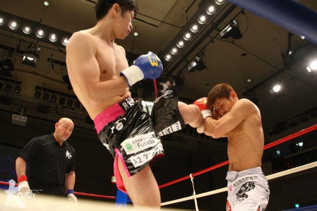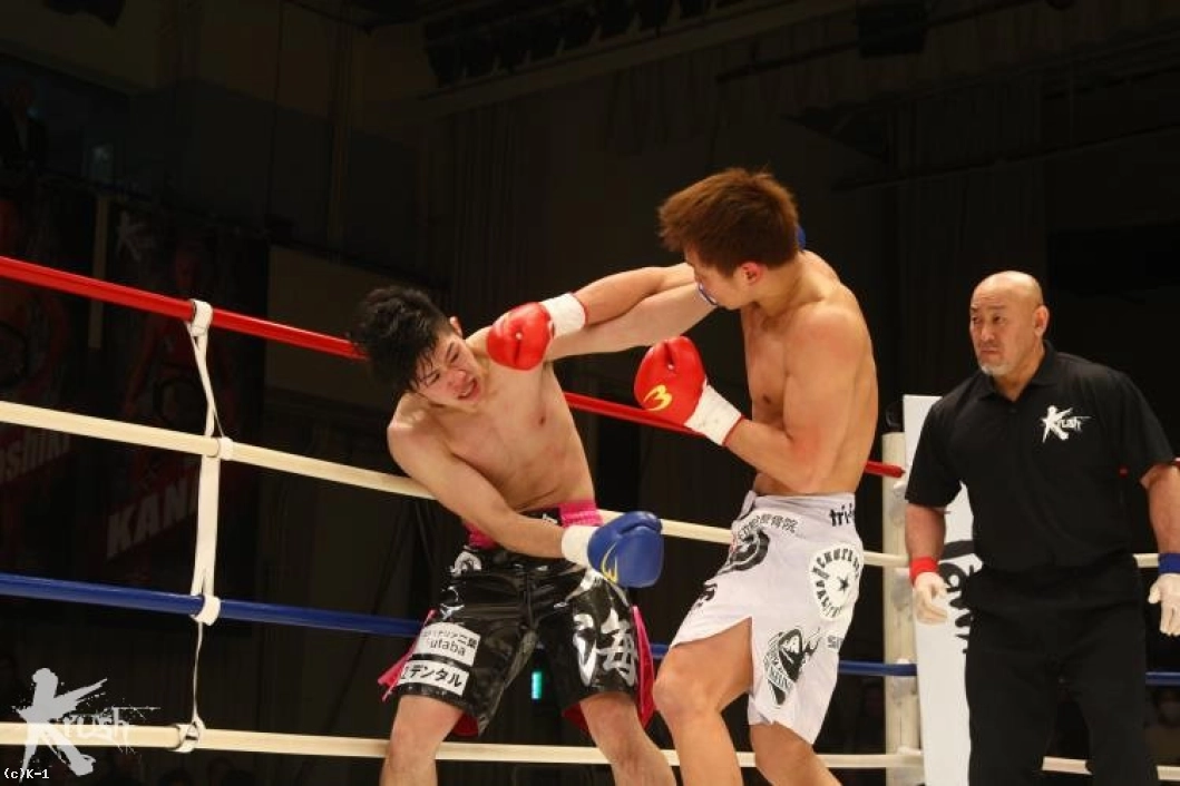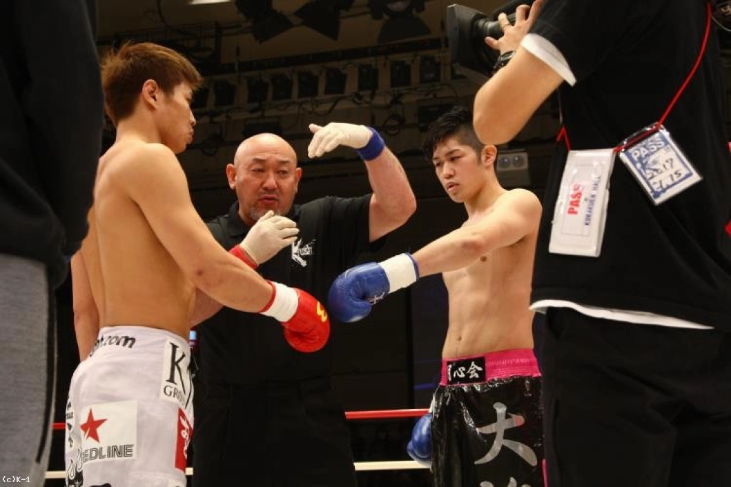 キャリアでは大きく劣る和島だが、臆することなくサウスポーから威力ある左のミドル、左ストレートと先攻で見舞っていく。やや後手となった中島だがガードからヒザを突き上げ、右ミドル、右ローと返す。和島は中島得意の跳びヒザを繰り出す。これに対し中島は左ローで和島の体勢を崩し、そこから右ストレート、さらに右ローキック。和島が再び跳びヒザを放てば、中島はプライドを刺激されたか、ここは跳びヒザをやり返す。中島が再度の跳びヒザを繰り出すと、和島はこれを察知して左フック。