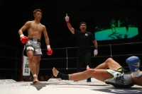 2R、野杁はフレイタスのパンチを弾きながら前に出て、ローキック、足へのヒザと飛ばす。フレイタスのショートストレートがとらえるが野杁は逆に打ってこいと挑発し、至近距離から顔面へのヒザを放って効かせ、これでフレイタスがフラついたところをさらに顔ヒザ、そして最後は右ハイキックで豪快になぎ倒し、KOを決めた。