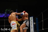 1R、上背で勝る古谷野に対し、大岩は左フックに右ストレート、さらに左ミドルと前に出る。古谷野はこれに対するように前に出るが、大岩はそこをカウンターの右クロスでとらえ、古谷野が返したヒザにも右クロスでカウンター、そこからの連打で出ダウンを奪う。