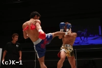 再開すると、山田はリーチを活かして前蹴りと左ミドルで倉崎から間合いを保つ。そして左ストレート。さらに前へ出て倉崎のボディにヒザ蹴りを狙う。倉崎はしかし接近戦に持ち込み右クロス、左フックをヒット。最後は倉崎がパンチで攻める中ゴングとなる。