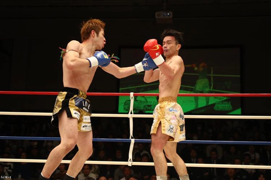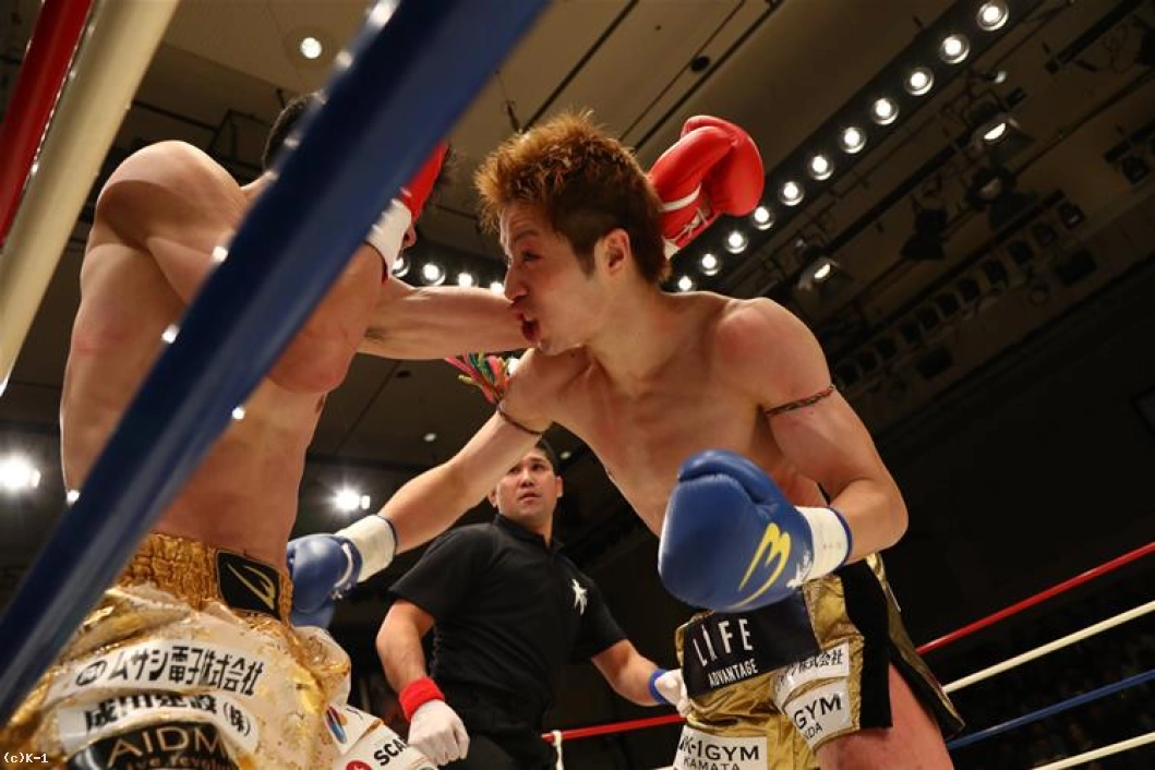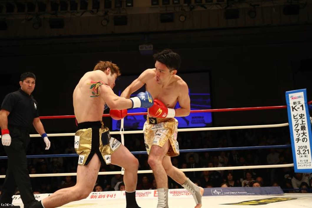 (延長でローでいくことに迷いはなかった?)このままローで倒せるのか?というのはありましたけど、最初から打ち合ったら3Rと同じ展開になると思ったので、最初の起点はローからいこうと思いました。そしたらかなりローが効いていたので『ここだ!』と思ってローでいきました。(試合後の久保に対する心境は?)一選手として頑張っている選手だと思うし、僕は彼に憎しみや恨みはないし、彼はああいっていましたけど、あれは俺に対するひがみだろうと思っていました。陰と陽で言うなら、俺が陽であいつが陰だった。それだけですね。(次の目標は?)今回防衛戦をクリアできたので、次はもう一本、K-1のベルトですね。条件があえば。K-1でタイトルマッチやらせてもらえるなら、それなりの条件もあるし、それが合わないと俺はやらないので。条件が合えばやります」