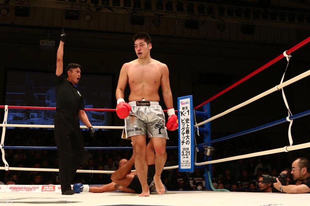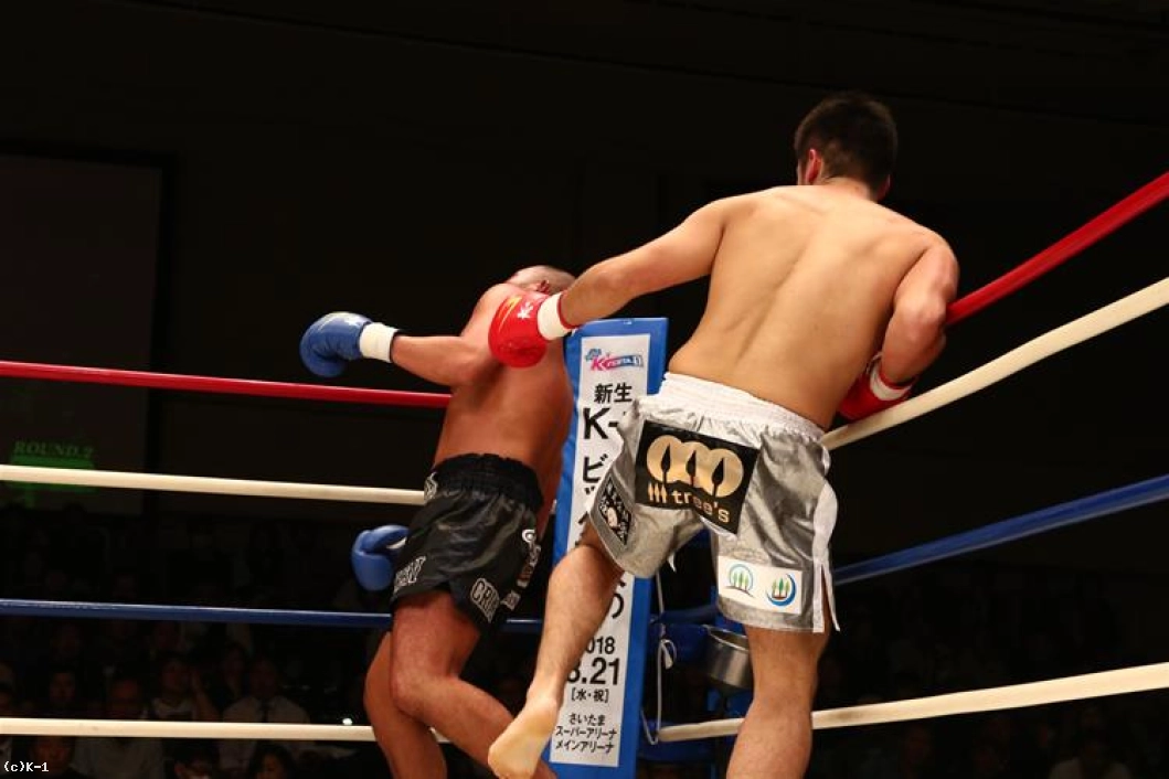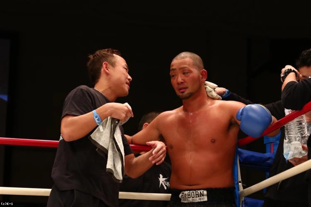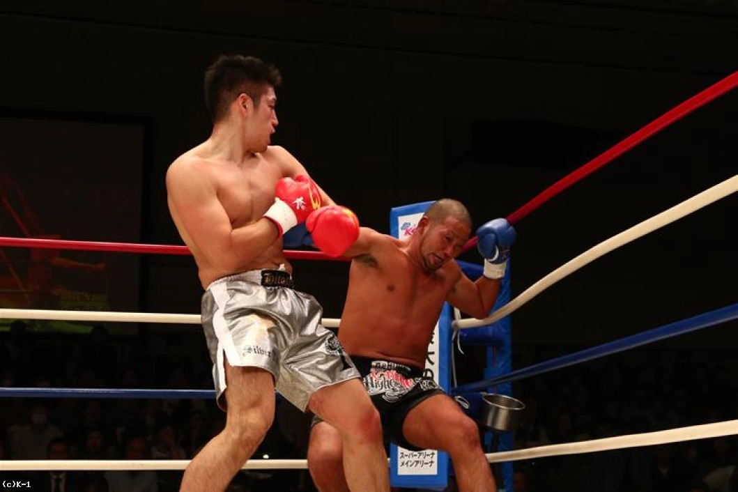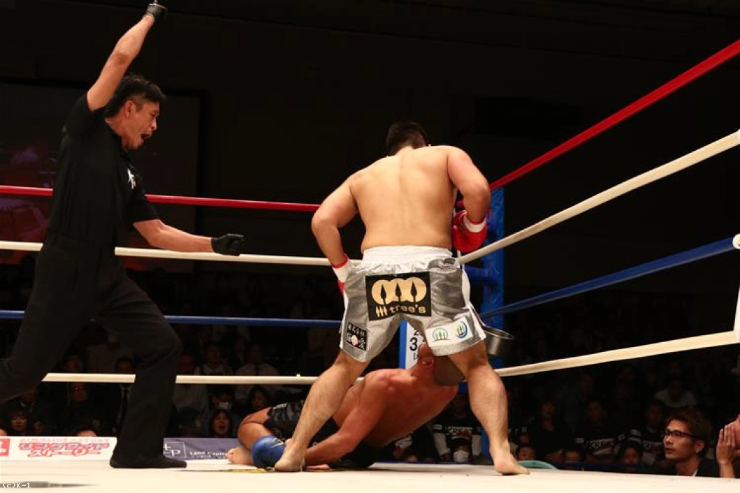 ダメージのうかがわれるKENだが、立ち上がると打ち合いに臨む。右ストレートを決めるが、杉本はボディにヒザを入れ、左フック・右ストレートから最後は左ハイを決め、これでKENをバタリと倒してKOした。