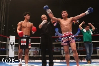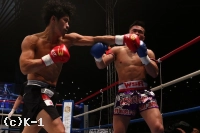 3R、功也はまだダメージが抜けていないかゴンナパーのローと前蹴りに止められ詰め切ることができない。それでも距離を詰め左ストレートに力を込める功也だが、ゴンナパーはプッシングで功也を遠ざけ致命傷を追わない。ゴンナパーにロープを背負わせ、左ストレート、左クロスと攻迫る功也だが、ゴンナパーがしのいで終了。