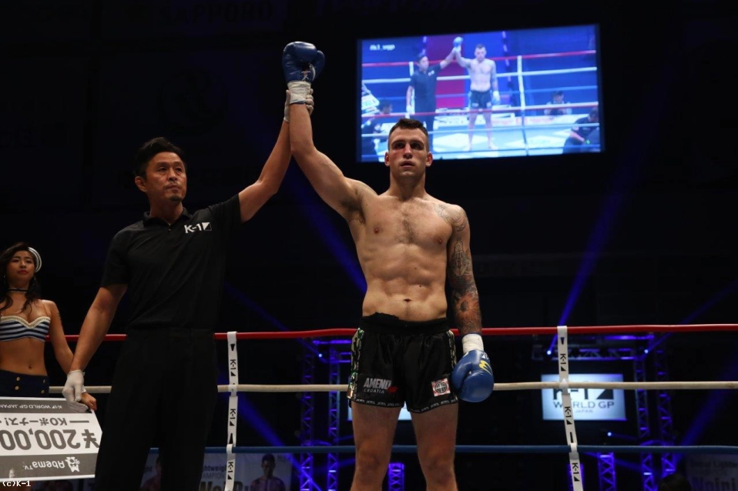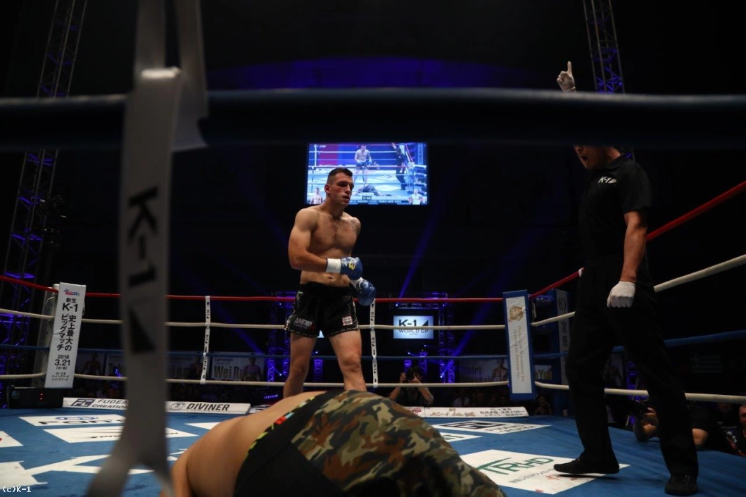 上原は何とか立ち上がると、ダメージを感じさせながらも後ろ回し蹴りを連発。しかしプラチバットは左ボディの2連打から上原をコーナーに詰め、跳びヒザを決めると2連続の初回KOで決勝進出を決めた。