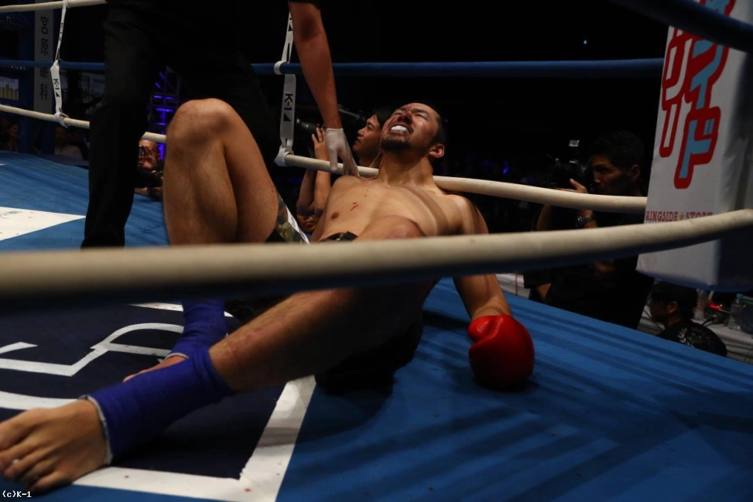 「(試合を振り返って?)いやあ、強かったですね。ハイキックは食らう前にわかってたんですけど。(対戦相手の印象は?)すべての攻撃が強くて。身長がでかくて、思ったとおりの選手でしたね。(今後の目標は?)そうですね……。まあ、今後はもしかしたら、ないかも知れません。