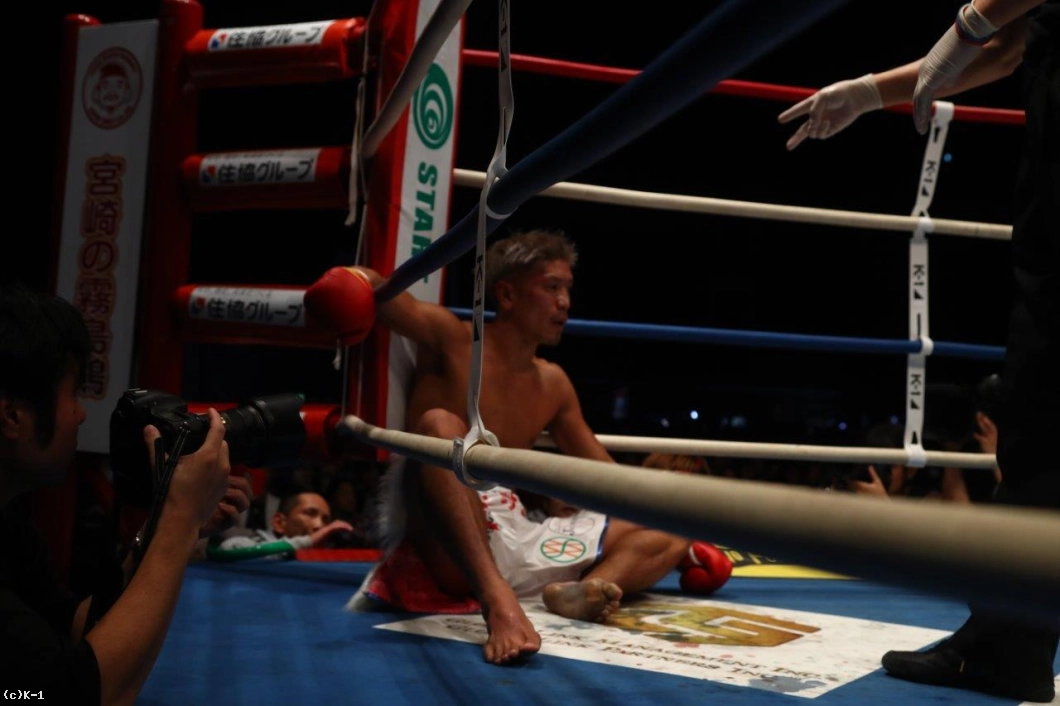 3R、木村は右の蹴りに合わせた右フックでフラつかせるが、城戸は倒れない。やはりダメージがあるか動きに精彩を欠く城戸。逆に木村は動きが見えているかのようにKOを狙う。しかし城戸も木村が前に来るところに左ヒザをボディに突き刺す。だが木村は左フックを当て、右フックを決めて3度目のダウンを奪う。