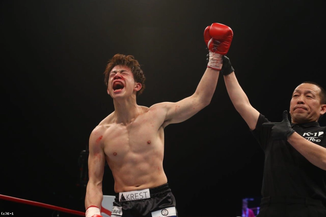 「(試合を振り返って?)あんまり覚えてないですけど、ローキックが効いたのは覚えてます。最初はしっかりパンチをブロックして足から崩していく試合運びが出来てよかったです。(対戦相手の印象は?)やっぱりパンチが強くて、一発でももらったら危ないなと思いました。(今後の目標)どんどん試合の度に成長して勝ち上がっていきたいです」