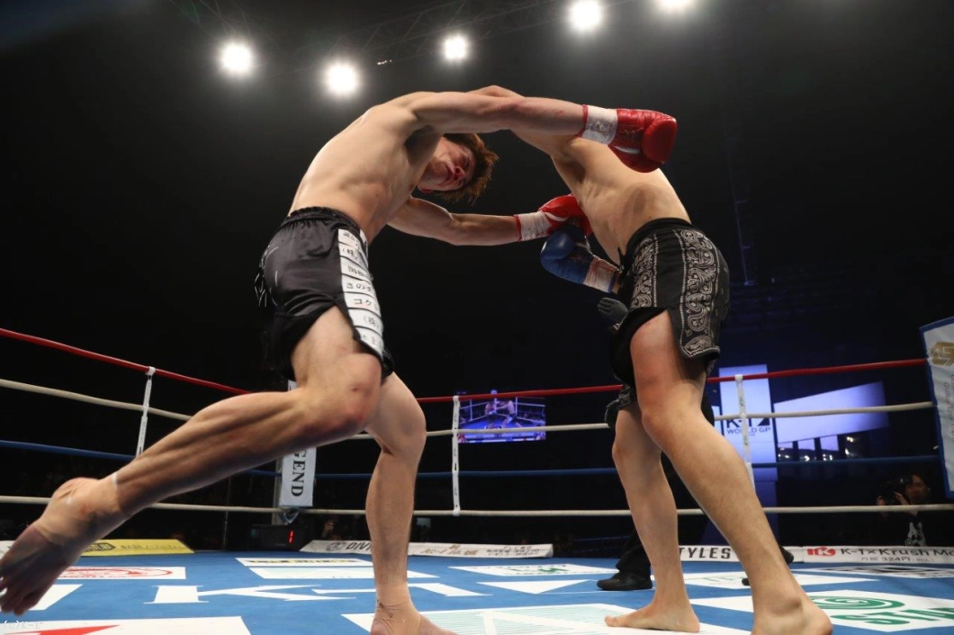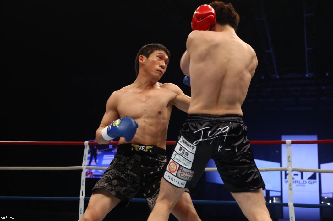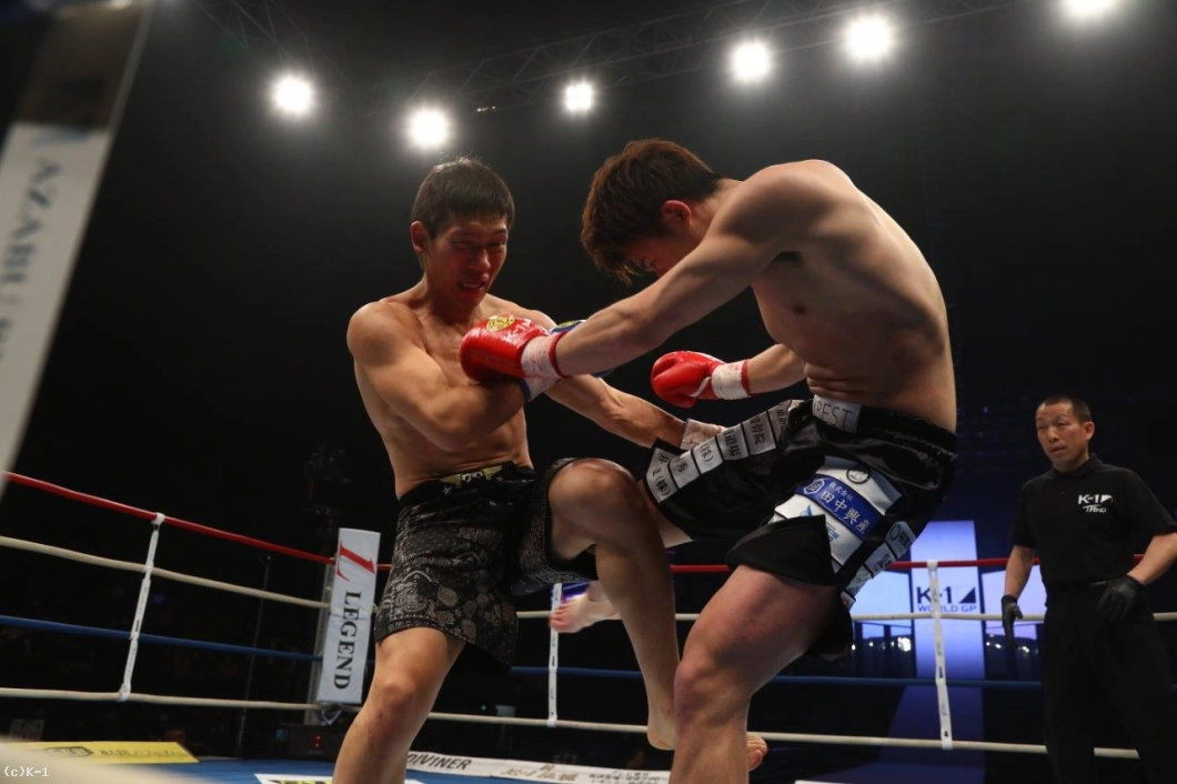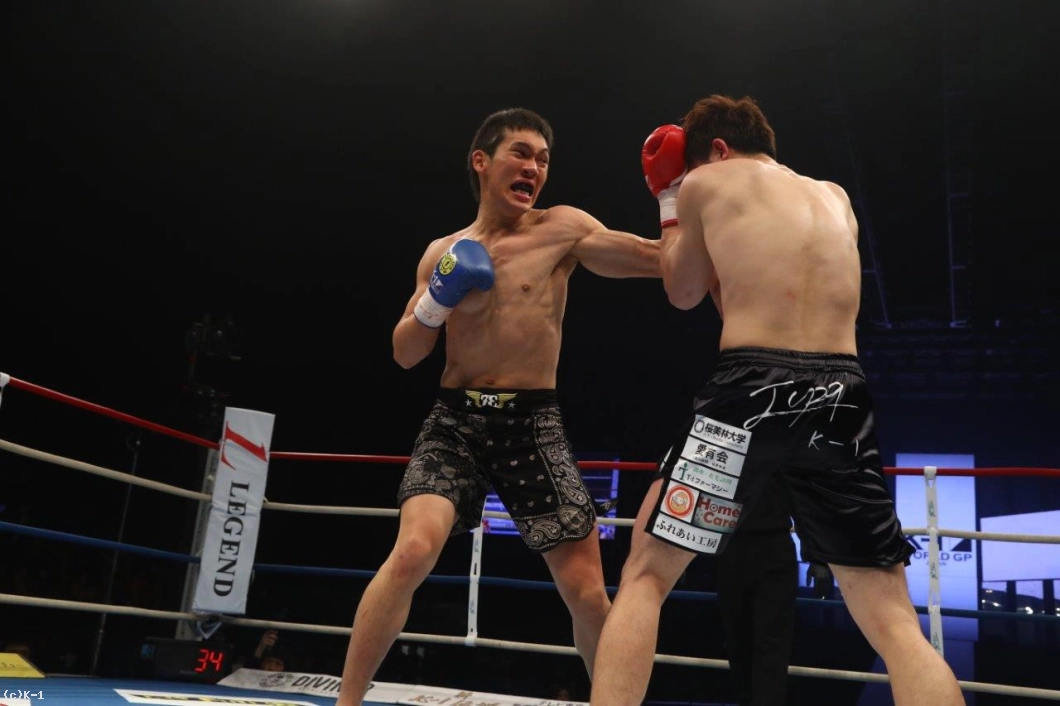 1R、両者ともオーソドックスから松村はステップを駆使してよく動き、距離を詰めて左右のフックを回転させる。被弾して顔が紅潮する佐野だが、ヒザと前蹴りで反撃し、左ジャブでタイミングよくとらえて松村を後退させる。鼻血の見られる佐野だがさらに右ローキックをヒット。松村はしかし勢いを落とさず、左フックを上下打ちし、右ローキック。佐野も右ローを返して松村の体を「く」の字にさせる。足が効いている松村はサウスポーに構えを変え、左足を後ろにする。右目をしかめる松村。何かダメージがあったか。