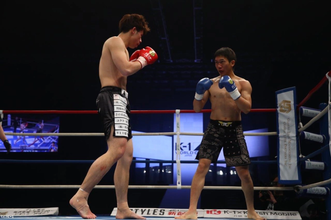「(試合を振り返って?)自分の力を出せなかったです。気持ち的な力が全然足りてなくて、自分の持ってる肉体のポテンシャンルを出せないまま終わりました。(対戦相手の印象は?)彼は自分の仕事をしたなと思います。自分の力をしっかり発揮した佐野選手はプロとしての仕事をしたなと思います。(今後の目標は?)次こそは倒れるんではなく倒したいです。(怪我の状態は?)右目が眼下底骨折で、左足が肉離れじゃないですけど、蹴られすぎて筋肉が切れている状態です。また地元に帰って病院に行くことになってます」