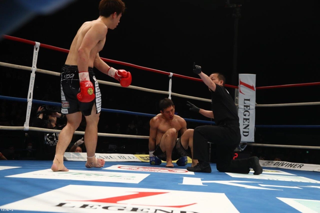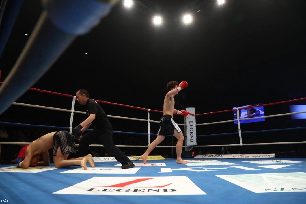 3R、松村は再び左右フックを振るっていくが、佐野はこれをブロックして右ローを入れ、これに松村はダウン。立ち上がった松村だが足に力が入っていない様子で、佐野の右ロー、ヒザ、ストレートにさらされる。コーナーに詰められ集中打を浴びる松村にレフェリーはスタンディングダウンを宣告。立ち上がりなおパンチを振るう松村だが、佐野はヒットを許さず、最後は右ローでこのラウンド3度目のダウンを与えてKOした。