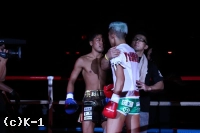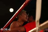 「喧嘩みたいな試合で自分的には0点です。次、もっと強いやつとやる時には修正したいと思います。(試合後の河野と何を話した?)ナイス根性だなって感じで話しました。気が合いそうなんで、東京と大阪は遠いんですけど、今度遊ぼうって話をしました。あともう一回チャンスをくれって言っていたんで、這い上がってくれば、もう一回やってあげるって言いました。(今後は?)ここから無敗でいって、来年にK-1のトーナメントに出たいっす」