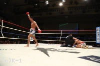 「(試合を振り返って?)よかったなっていう。ホント、不安しかなかったから……。練習、まったくしてないので、ホッとしてます(対戦相手の印象は?)気迫を凄い感じました。だからこそ、そこで負けられないなというのがありました。ホント、気持ちだけでした。(今後の目標は?)(昨年の)9月にK-1出させてもらって、借りがある選手がいるので。あれはトーナメントだからとか、そういうのではなく、男として負けたらやり返さなきゃいけないし。まあ、KrushがNo.1だということを。世界一を狙わなきゃいけないと思っているので、それを証明したいです。(試合の最初から出たのは、逆に練習ができていなかったから?)というよりも、自分のペースを作らなきゃなというのが。いろんな不安なところばかりだと、後手後手になるというか、気持ちも弱腰になってくるので。どっちかっていうと飲んでやろうという気持ちで、最初からいきました。(足は効いたのでは?)効きました(苦笑)。それも出さないって決めてたんですけど。やっぱり、強烈でした。(昨日の会見で対策を練らなかったと言ったのはケガが原因?)最初は立てたんですけど、練習ができなかったので、そういうことです」