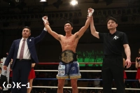 「牧平選手、ありがとうございました。ジムのみんなは分かると思うんですけどケガをして、ほとんど練習できなくてシンドい日々が続きました。でも大宮司さんの言葉とみなさんのサポートのおかげで勝つことができました。これからもKrushチャンピオンとしてこの道を極めます」