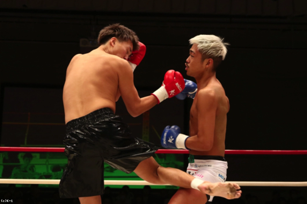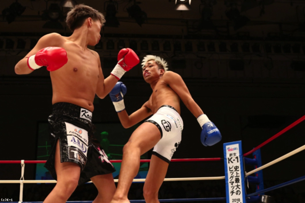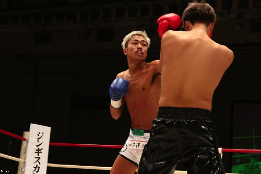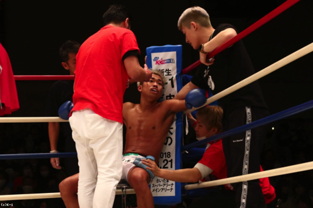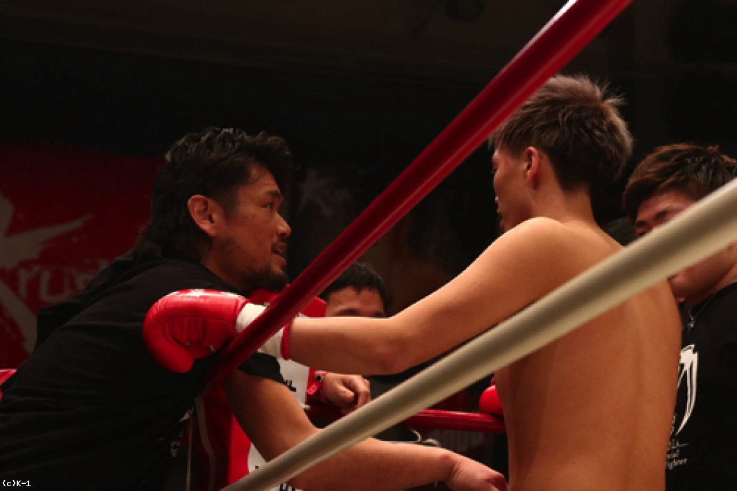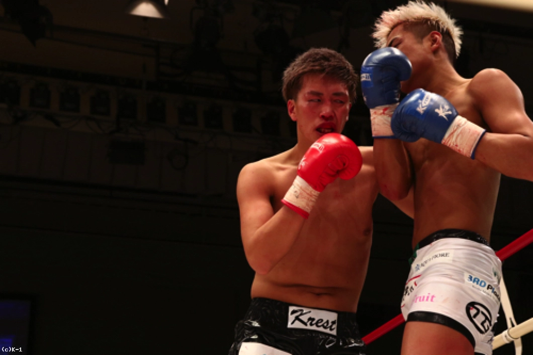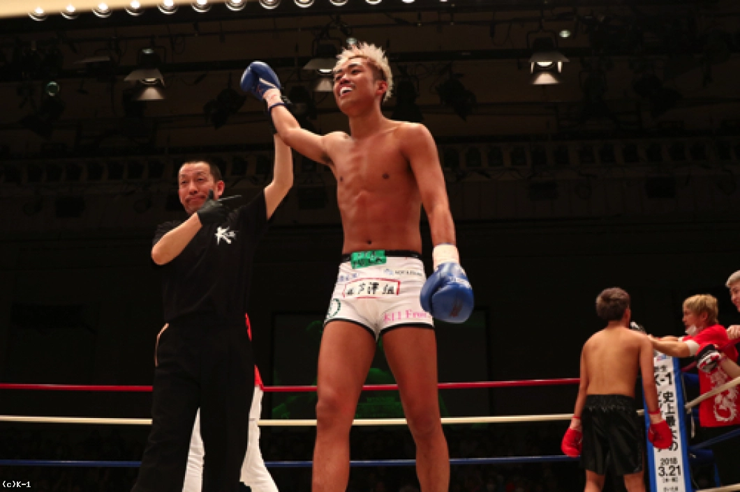 (対戦相手の印象は?)普通にテクニックだけだったら佐野選手と俺では子供と大人の差くらいあったと思います。でもその差をなんとか気持ちで押し切ることができて、よかったと思います。(今後の目標は?)俺はK-1で世界一になるために上京してきたので、このまま世界一になるために、練習からもっと厳しくして、もっといい試合をして勝ちたいと思います。応援よろしくお願いします」