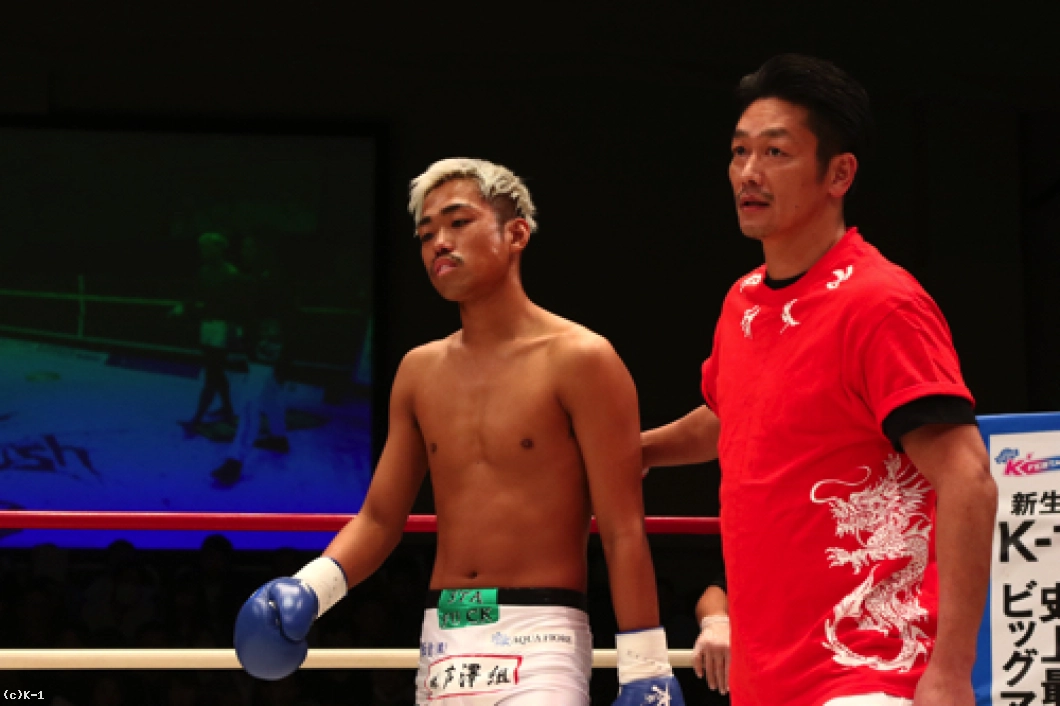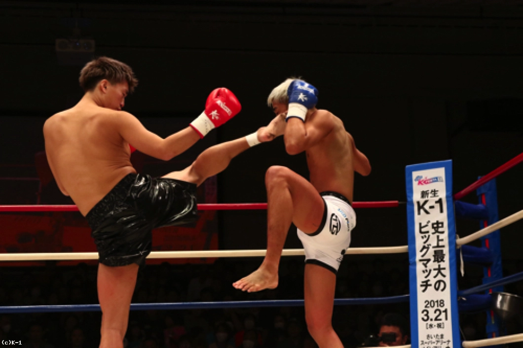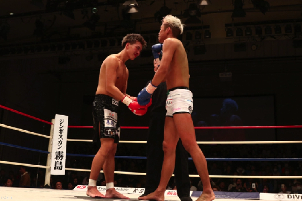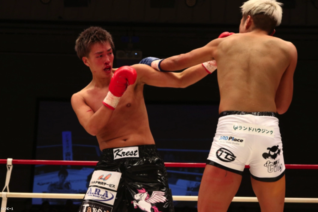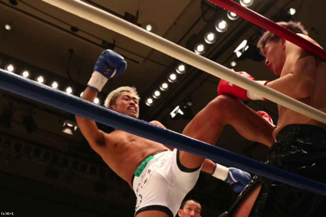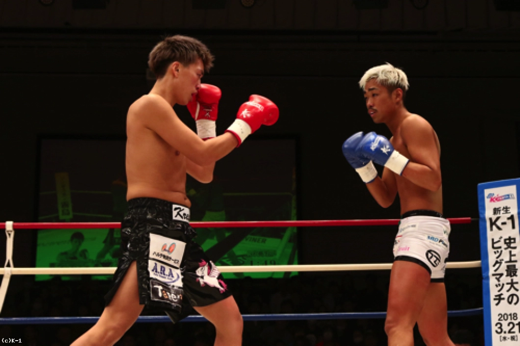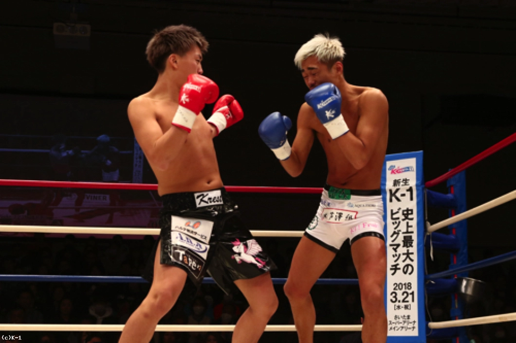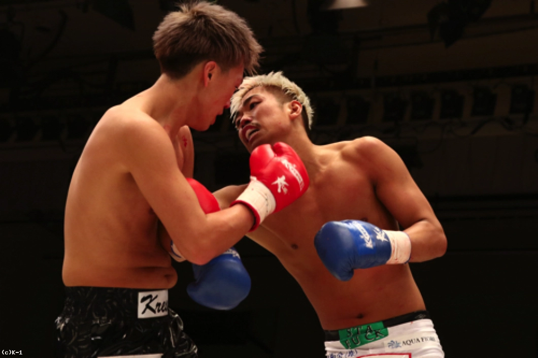 (対戦相手の印象は?)普通にテクニックだけだったら佐野選手と俺では子供と大人の差くらいあったと思います。でもその差をなんとか気持ちで押し切ることができて、よかったと思います。(今後の目標は?)俺はK-1で世界一になるために上京してきたので、このまま世界一になるために、練習からもっと厳しくして、もっといい試合をして勝ちたいと思います。応援よろしくお願いします」