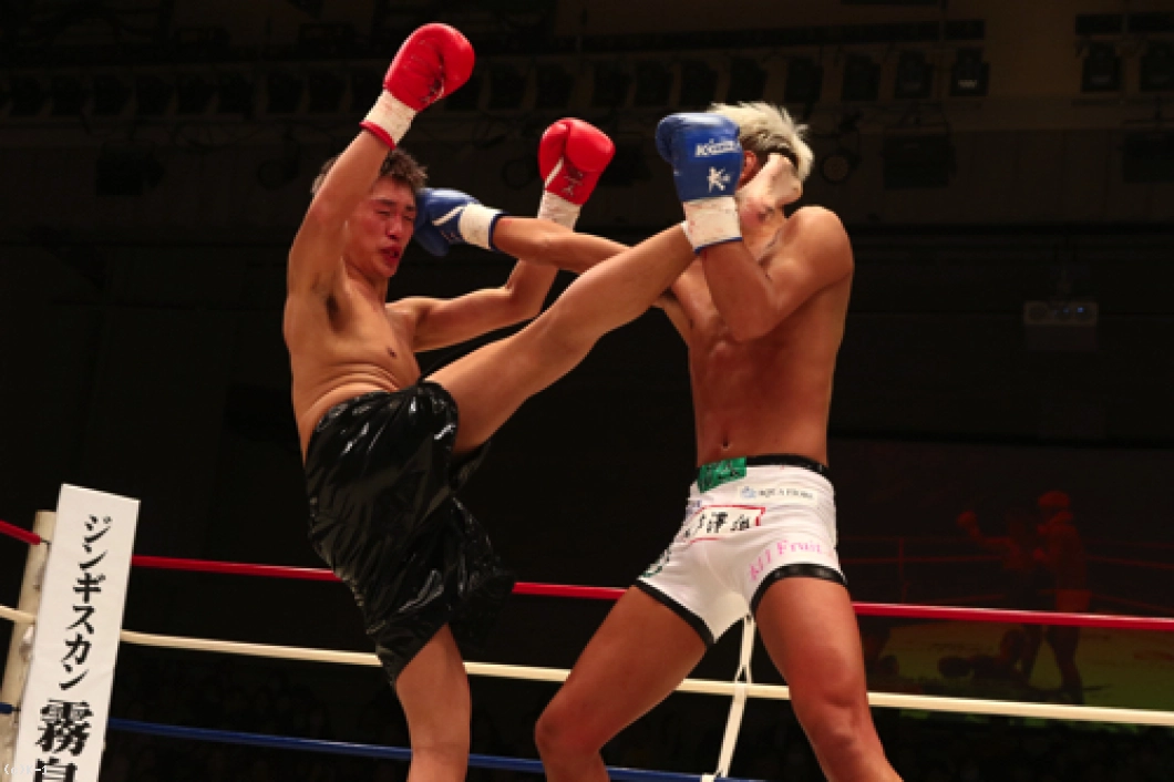 3R、被弾で顔が紅潮している佐野に芦澤はワンツーで切り込み、その後もジャブ、腹へのヒザと攻める。しかし佐野も三日月蹴りで対抗。ややこれが効いた風の芦澤だが、追撃を封じるため右ストレート、左フックの連打で攻め立てる。