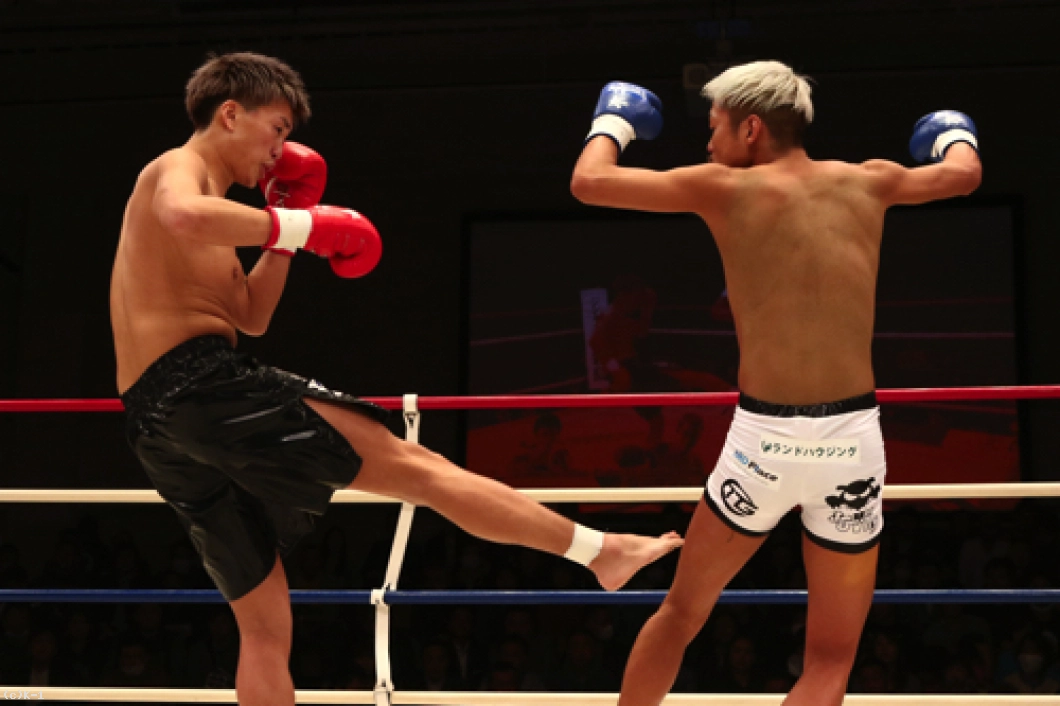 2R、佐野は右ローを入れながら芦澤を追っていく。芦澤はリズミカルなフットワークと上体の振りからジャブ・ストレートを放っていくが、佐野はこれに惑わされず、近距離で打ち合いを展開。しかし打ち合いになると芦澤はアグレッシブさと当て勘のよさを光らせ、ヒザから左フック、右ストレートと連続で佐野をとらえる。佐野もしかし三日月蹴りで反撃するが、ここは芦澤が優勢な印象。