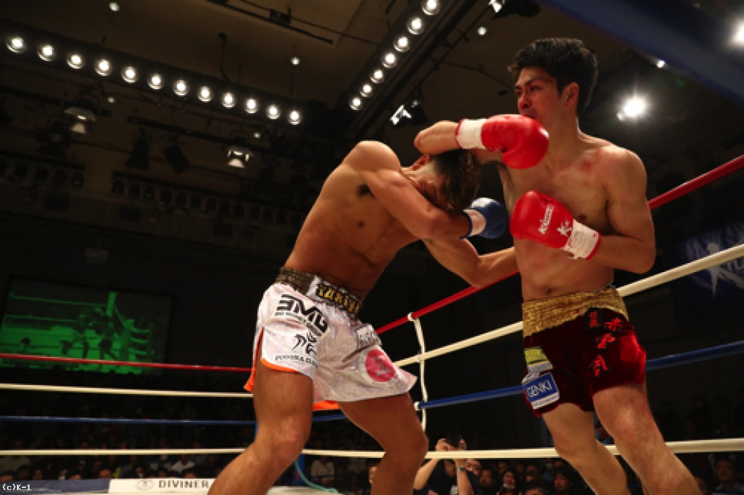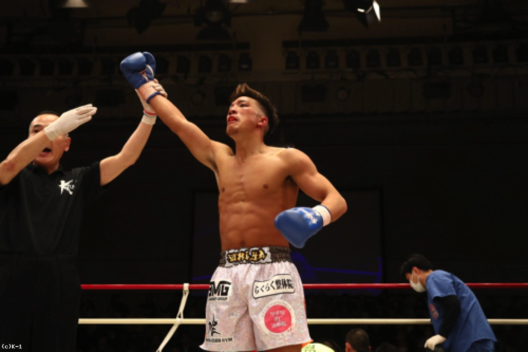 「(試合の感想は?)中村選手は強くてタフで。ダウン一回取られて、取り返して『もう立たないでくれ』って思ったんですけど立ってきて…意地でも負けたくなかったんで頑張りました。(対戦相手の印象は?)僕、今回が6戦目なんですけど、正直負けるんじゃないかなって思っていて。でも試合をやってみて、なんとかいけました。(-65kg次期挑戦者決定トーナメント決勝への意気込みは?)記者会見でも言ってるんですけど、篠原選手にKHAOSで負けていて、その悔しさを次の5月につなげられるとうれしいですね。やるからにはチャンピオンベルト、絶対に獲りたいので。中澤選手を倒して、チャンピオンベルトを獲りたいです」