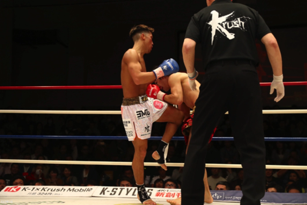 立ち上がったFUMIYAに中村は跳びヒザで向かい、そこから右ストレートで襲い、FUMIYAを再度のダウン寸前までフラつかせて終了する。