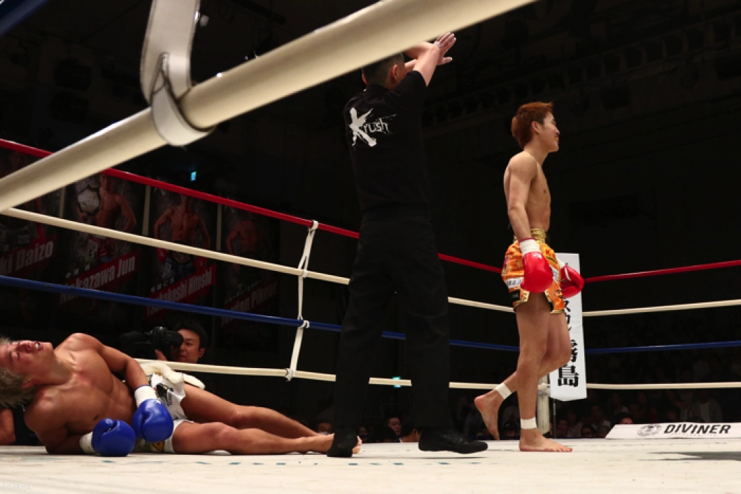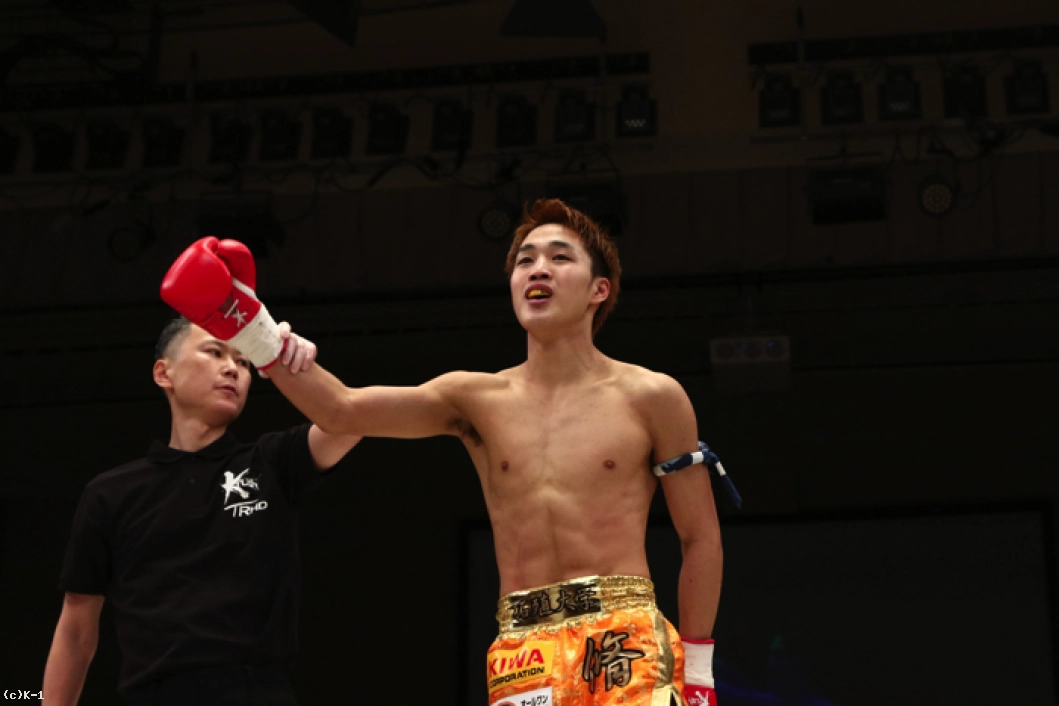 「(試合を振り返って?)はじめから相手がラッシュかけてきてるのはわかってたので、対策して臨みました。思った以上にパンチが見えたので、カウンターを合わせようと思ったんですが、ガードの上からなんですが後頭部にグラッてきたので、自分の距離に直してパンチを打ち合わずにヒザを合わせて。セコンドの指示が聞えたのがよかったです。(勝利について思うことは?)だんだん試合重ねるごとに応援してくれるファンのみなさんも増えてきたので、その期待に応えられてよかったです。(今後の目標は?)どんな相手でも倒す試合を見せるので、これからも期待してください。」
