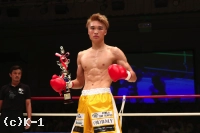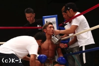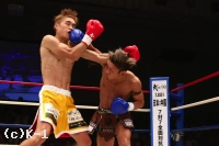 「(試合を振り返って?)判定で勝利できてホッとしてるんですけど、お客さんはKO勝利に期待してたんじゃないかと思って。本音はKOしたかったです。(対戦相手の印象は?)気持ちが強くて、3Rになって。最近、3Rまでやることが多くて、気持ちの勝負になることがあるんですけど、覇家斗選手は気持ちが強くてやりがいがありましたね。(メインでは郷州選手のタイトルマッチが行なわれるが?)郷州選手には一度負けてるんで。その悔しさを晴らしたいと思ってます」