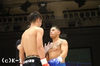 3R、ジャブでサラビアを遠ざけ、顔へのヒザを突き上げる玖村だが、サラビアの右ストレートを受けロープにフラついてしまう。何とか体勢を立て直す玖村。サラビアは追撃せんと圧力を強めるが、玖村はダッキングとプッシングでサラビアの攻撃に対処する。しかしこれまでのラウンドよりサラビアの圧力を避けられなくなっている。動きの落ちてきた玖村にサラビアは左右ボディフックで追い打ち。だが、玖村もワンツーをヒットする。ここからワンツー、前蹴りと前に出ていく玖村。そして左フックの相打ちから右ストレートを当ててラウンド後半を盛り返して終える。判定は29-28(玖村)、29-28(サラビア)、29-29でドロー。軍司vs椿原に次ぎ延長となる。