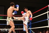 1R、郷州は前蹴りから跳びヒザで向かう。山本はこれを正面で受けず、ステップで横にかわして応戦する。郷州は右ストレートを当て、前蹴りで山本を追う。山本も前蹴りを飛ばして郷州をストップする。一旦止まったかに見えた郷州だが再び前進して左右のクロスで山本を襲う。山本をコーナーに詰め郷州は左右のストレートからボディへのヒザ。前進してくる郷州を山本はやはりサイドへかわし、左ハイを叩き込んでダウンを奪取。すでに3分は回っており、郷州が立ち上がったところで終了のゴングとなる。