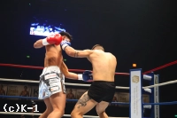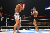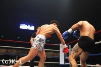 2R、林はこのラウンドも前に出て右クロスを振るい、ボディにもヒザを入れる。ギャフィーはこちらも変わらず左フックに力をこめるが、林はよく見えており当てさせない。ギャフィーはロープを背にしてリングを回る。そこからフックを狙うが、林はクリーンヒットさせない。ただ林もギャフィーのフットワークが速く、なかなか適打を与えられない