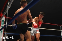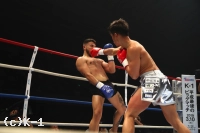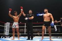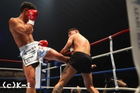 3Rものしのしと前に出てギャフィーを追う林、リングをフットワークで回るギャフィーの展開は変わらず。林はボディにヒザを入れ、足を止めんとするギャフィーのフットワークは止まない。ギャフィーは頭を振ってかわすのも巧みで、林のパンチを当てさせない。逆に左フックを当て林の右目を赤くさせる。ギャフィーをコーナーに詰めた林は左ボディフックでニコラスを嫌がらせ、クリンチを呼び込み試合を終える。判定は29−28(ニコラス)、30−28(林)、30−29(林)の2−1で林。準決勝に進出した。