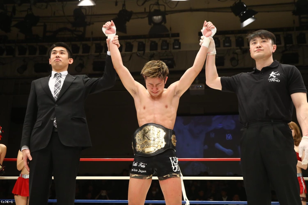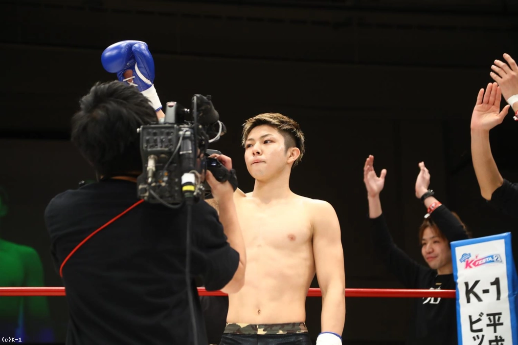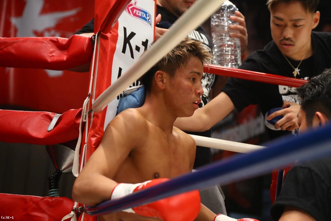 「(試合を振り返って?)課題はいっぱいあったんですけど、チャンピオンになれたことにホッとしています。(対戦相手の印象は?)パンチが想像以上に強かったです。(今後の目標は?)全然まだまだチャンピオンとして、今日の試合内容ではダメだと思うので。もっと世界中から強い選手がKrushに集まってくるような選手になりたいと思います。(バッティングやローブローの影響は?)ないと言ったらウソになるんですけど、それで集中力が切れるのはダメだと思ったので、そこは意識して戦ってました。(相手のボディは?)来るのはわかっていたので想定内でした。(攻撃の手応えは?)打ち合っても負けないなと思ったので、パンチでいきました。(スーパー・バンタム級で戦いたい選手は?)K-1でダントツで強い武居由樹選手とやらないといけないなって思っています」