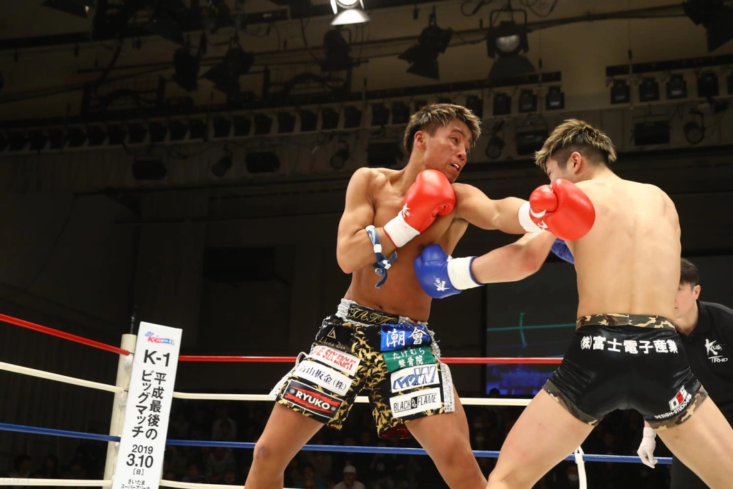 1R、玖村は前蹴りで軍司を抑え、軍司が前に来ると左ショートフックをヒット。しかし軍司がボディフックを振るっていったところで軍司の頭が玖村の鼻筋にバッティングで当たってしまい、ドクターチェックが行われる。再開すると、ジャブ・左フック・右ストレートを振るう軍司に対し、玖村は前蹴りで抑え、そこから右ストレート、左フックに繋げる。ラウンド最後にも玖村が軍司の左ジャブに右クロスをかぶせてヒットし終える。