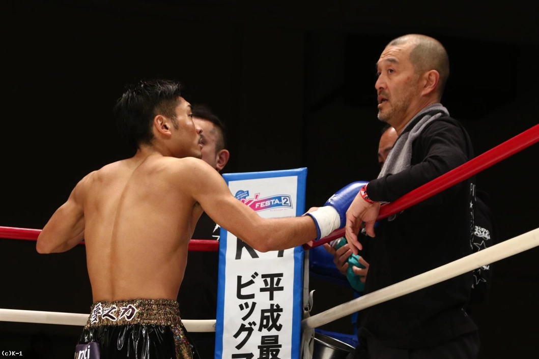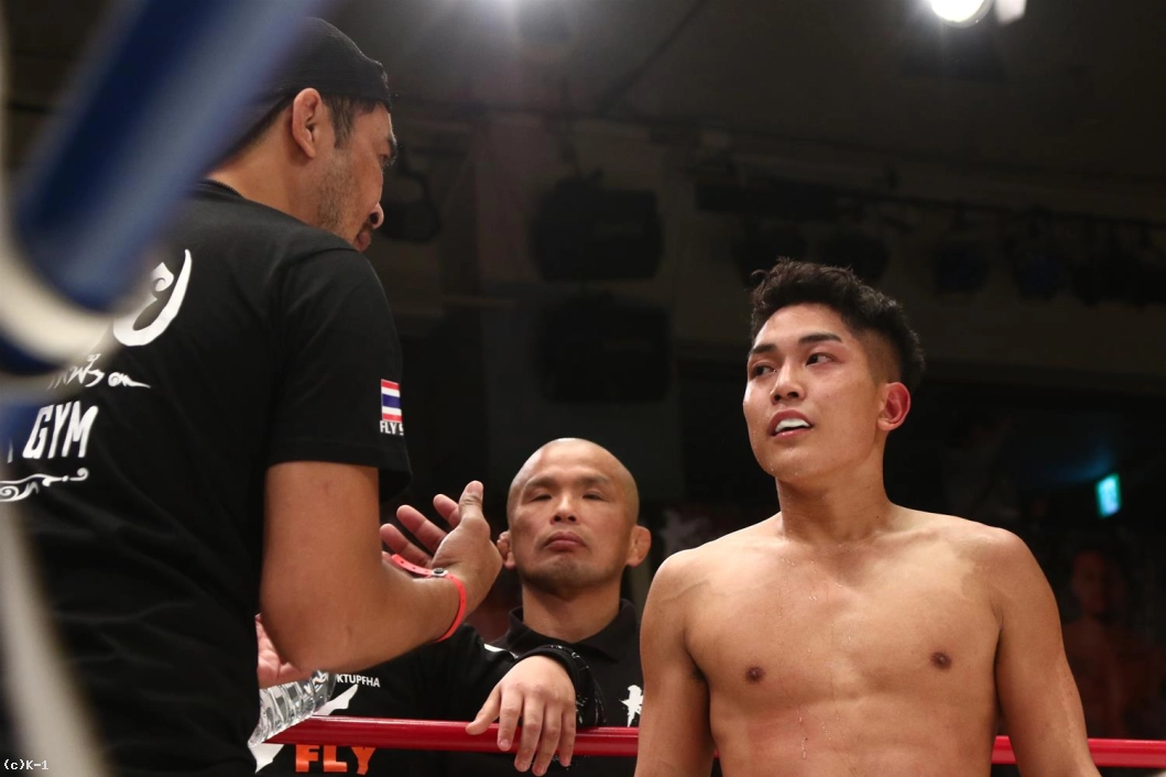 「(試合を振り返って?)Krushのデビュー戦ということで、もちろん蹴りの対応をしてきて、そこに関しては少なからずできたのかな、と。でも、倒せなかったのは自分の弱さ、それだけですね。(対戦相手の印象は?)林選手は映像のとおりタフで、パンチが当たっても向かってきたので。まあ、勝てたんで次にはつながったと思いますが、ダメですね。会長にも怒られると思います。(今後の目標は?)プロボクサーでやってましたが、今後はキックボクサーとして成長できれば。これから盛り上げていければいいなと思います」