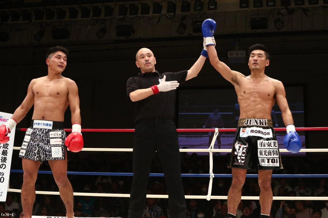 3R、佐々木は左ボディストレート・ジャブで前に出ながら、左ストレートとヒットを重ねる。林も左右フックを振るうものの、佐々木はさすがの動体視力でかわしていく。右ジャブを当て、そこから左ストレートにつなげる佐々木。さらに跳びヒザ蹴りも見せる。反撃に来た林の右ストレートをダッキングでかわして当てさせず、佐々木は試合を終える。判定は30-29、30-28、30-28の3-0で佐々木。ボクシングからの転向初戦、Krushデビュー戦で高い技術を見せ勝利した。