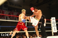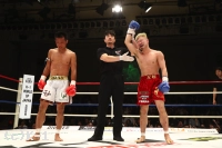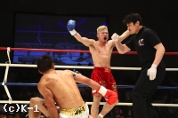3R、郷州が圧力を掛け友尊にロープを背負わせるが、ここで友尊の左クロスが当たり郷州はダウン。立ち上がった郷州はダウンの挽回に向かう。ガードを固めながら友尊を猛追し、友尊をコーナーに詰めてジャブ・ストレート、ヒザと友尊にダウンを迫る。右インローから右ストレート、右アッパーと迫る郷州。さらに右ストレート、前蹴り、右ストレートと郷州のヒットが目立ってくる。さらに右ハイも友尊に当て、劣勢の友尊は下がっていく。ロープに詰められ、郷州は左右連打を集めるが、友尊は足を使って回り、ダウンを免れて終了。判定は30−27、30−27、30−26の3−0で友尊。これで友尊は2連勝となった。