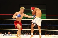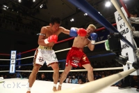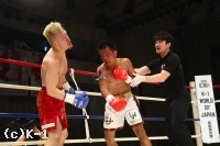 2R、友尊はサウスポーから左のストレートを入れ、その後は軽快にリングを回る。そして左ローを繰り出すと、郷州はこれにダメージがあったかやや動きが止まる。友尊はジャブを連続で放って郷州の進入を阻み、それでも郷州が入ってくるとフックのカウンタ—を合わせる。だが、郷州も打ち下ろしの右ストレートをヒット。郷州はここから圧力を強め、右ロー、右ストレートを当てて友尊を押していく。