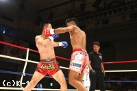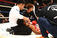1R、ジーウェイは鈍い音をローをヒット。だが、大沢は首を振り「効いてないぞ」とアピールする。大沢がステップインしての左フックを見せると、ジーウェイも跳びヒザで応戦。両者お互いのより取りを楽しんでいるように見える。ここで大沢がガードを固めて前に出ようとしたところでジーウェイが下からのヒザを突き上げ、直撃された大沢は顔からリングに倒れ込みダウン。ゴングが打ち鳴らされ、ジーウェイの勝利と思われたが映像により確認がされる。