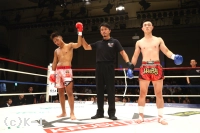 ここでレフェリーから説明がなされ、ジーウェイの最後のヒザが大沢の後頭部を掴んでいたため反則。大沢はKOされており続行ができないため試合はここまでで終了となり、大沢の反則勝ちとなった。勝利した大沢だが、ジーウェイの腕を上げ、強さを称えた。
