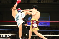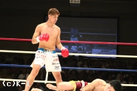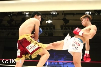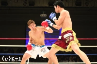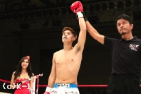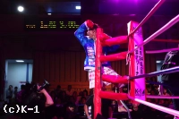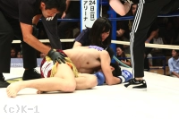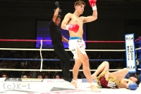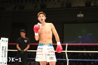 「(試合を振り返っての感想は?)右の三日月が効いたというのは分かったんで、それで途中で軌道を変えてハイキック蹴れたり、他の攻撃に変えることが出来たんで、そこは褒めたいです。けど打ち合いの部分がちょっとまだまだだなっていうのは感じてます。(対戦相手の印象は?)映像は見てなかったんですけど、K-1 JAPAN GROUP以外でベルトを持っているというのもあって、今までだとハイキックで倒せてたなって場面でも立ち上がってきたり、攻撃を返してきたりしましたね。やっぱりベルトを持ってる人の強さを感じました。(今後の目標は?)今は3戦3勝3KOで来て、自分の中では凄く波に乗ってると思うんですけど、今良い波に乗ってるからこそ落ち着いて、一戦一戦しっかりと勝てるように足元をしっかり見て、土台を固めたいと思います。これからも頑張って行きたいと思うんで応援よろしくお願いします」
