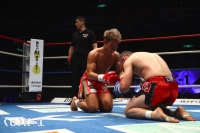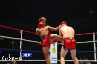 ババヤンは再び右ハイキックを見せ、これを晃貴に当てる。晃貴はヒザ蹴りを顔とボディに打ち分け、ババヤンをフラつかせる。しかしババヤンもこのヒザにスイングフックを合わせて晃貴をフラつかせる。だが、また晃貴もヒザ・蹴りと反撃し試合は激戦となる。