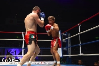 3R、ババヤンは晃貴のヒザと前蹴りをを警戒し、ガードを固めて前に出る。晃貴はジャブとヒザ・前蹴りとボディに攻撃を見舞ってからパンチに繋げる。ババヤンはボディへの攻撃をを警戒しながら左右のフック・右クロスで晃貴を襲う。