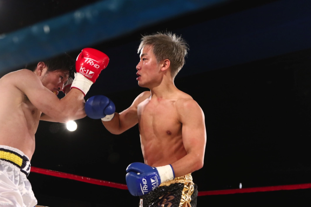 トーナメント一回戦で鈴木孝司を2RKOで下した関川。対する鈴輝は今大会でプロデビュー戦で、一回戦では向井貫太をローキックで沈めている。1R、鈴輝は開始から前に出てショートの左フック・右ストレートを見舞う。関川は1回戦でも当たっていた右クロスをここでも当てる。それでも鈴輝は前進を止めず、構えをスイッチしての右ショートフックで関川をダウンさせる。ここから鈴輝はサウスポーに構えて前に出るが、関川も右ストレートをヒットさせる。鈴輝は左ボディフックを効かせ、そして左右ボディフックを追加。関川も左ボディフック、右ローを返す。ラウンド最後は鈴輝が左右のフック・アッパーを畳み掛け終了する。