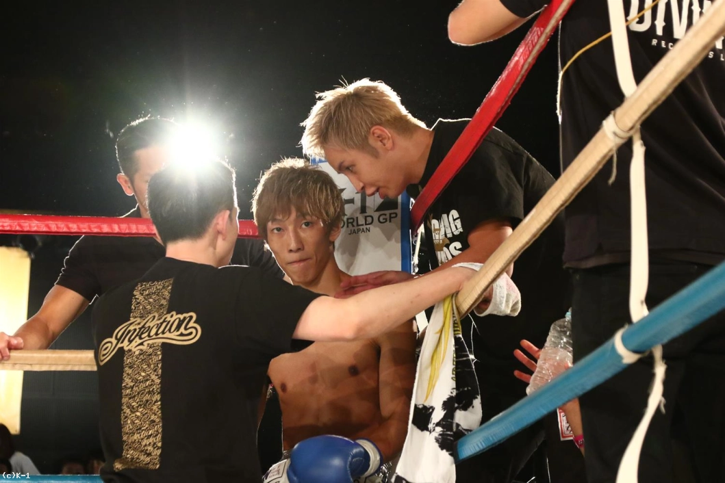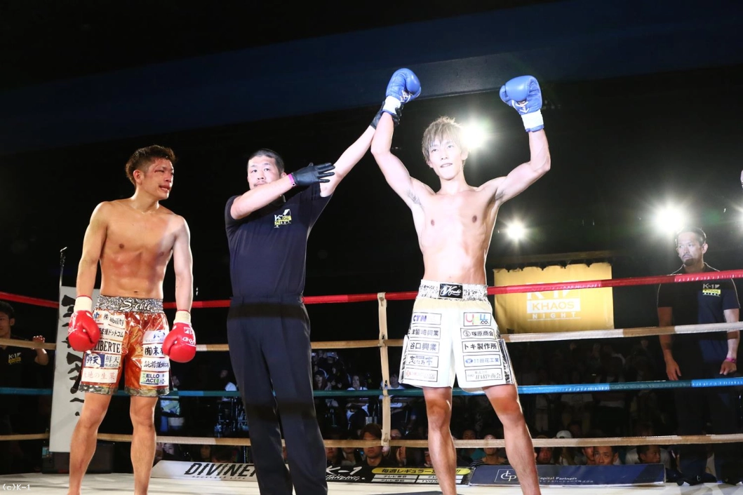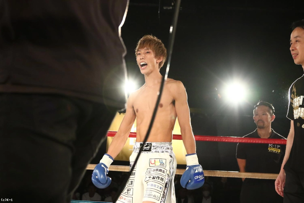 「(試合を振り返って?)やっぱりスパーリングと試合じゃ全然違いますね。試合は難しいなって。相手も本気で倒しに来てるので。今日はいい経験ができました。本当は倒したかったんですけど、倒せてないので、次は今日の経験を踏まえて考えていきます。(対戦相手の印象は?)勇治選手は強かったですね、気持ちが強くて。効いてるパンチも蹴りもあると思ったんですけど、僕の当てる場所が悪いのか、勇治選手の気持ちが強いのかわからないですけど、倒れなくて。凄く気持ちの強い選手でした。(今後の目標)反省点しかないんですけど、勝てたことは最低ラインの合格だと思うので、ここからステップアップできるようがんばります。応援よろしくお願いします。」