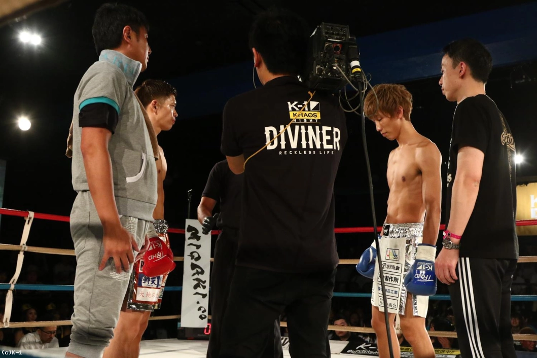 判定は30-27、30-27、30-27の3-0で此尾。K-1 JAPAN GROUP参戦前に2つのベルトを巻いている勇治を破ってデビュー白星を飾った。
