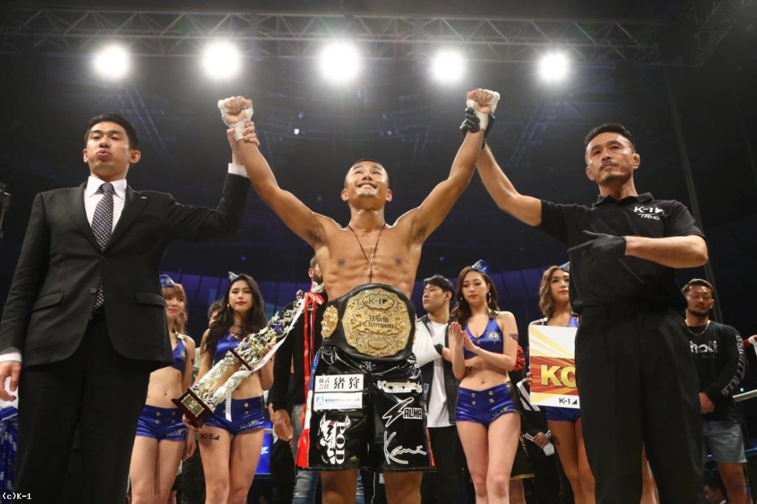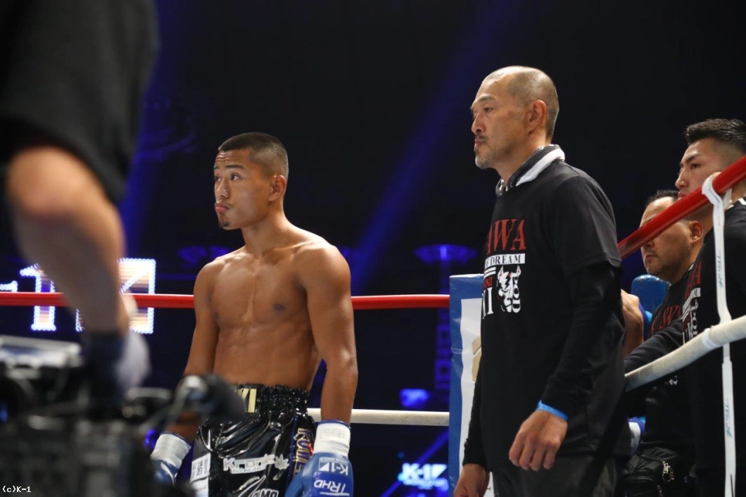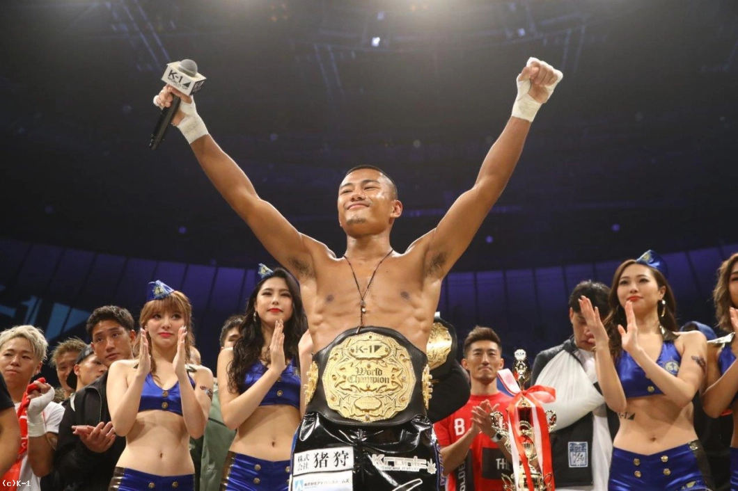 (これからどんなチャンピオンを目指したい?)本当にK-1の顔になれるような、ウチのジムの先輩の武居由樹くんだったり武尊選手、K-1の偉大なスターになりたいですね。(武居選手から言葉は?)『おめでとう』って(笑)。お互い毎日一緒にいて、ちょっと恥ずかしいのであんまり言いにくいですけど(笑)。でも、写真を撮ってもらって、『おめでとう』って言ってました(笑)。
