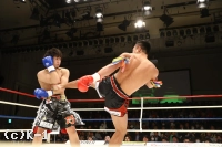 1R、サウスポーのゴンナパーに対し、横山は臆さず踏み込み右ボディフックを打ち込む。ゴンナパーの左ミドルもスウェーでかわし、横山は左フック、右ストレートと見舞っていく。ゴンナパーは顔の前にガードを上げて進み、左ミドルを放つ。横山はゴンナパーの左ミドルに左フックをカウンターで合わせる。横山はロープ・コーナー際を回っていく。左ミドル、左ストレートと襲い掛かるゴンナパーだが、横山はボディワークでかわす。のっしのっしと歩を進めるゴンナパー。跳びヒザを放つが横山は横にかわす。